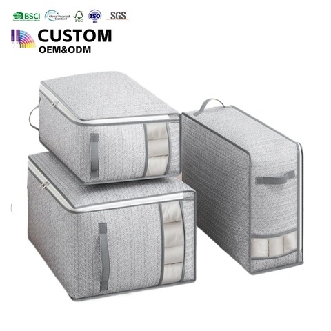 Sacs de rangement pour couvertures et édredons en tissu non tissé gris, grand format, classique, avec couvercle et fermeture éclair, boîte de rangement pour organisateur de placard à domicile